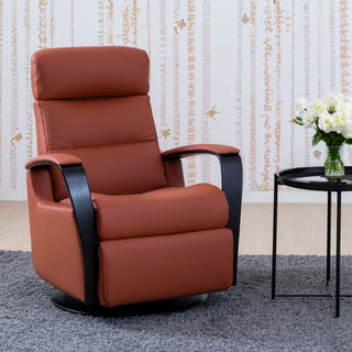 Introducing the Peak Swivel Recliner, the pinnacle of style. The Peak features a swivel base for versatile positioning, a smooth rocker-glide for effortless movement, and a manual headrest that can adapt to your preferences. What truly sets this recliner apart is the Cold-Cured Molded Foam at its core, a cutting-edge technology ensuring unmatched body support. This recliner contours to every curve of your body, making it the ultimate addition to your living space.